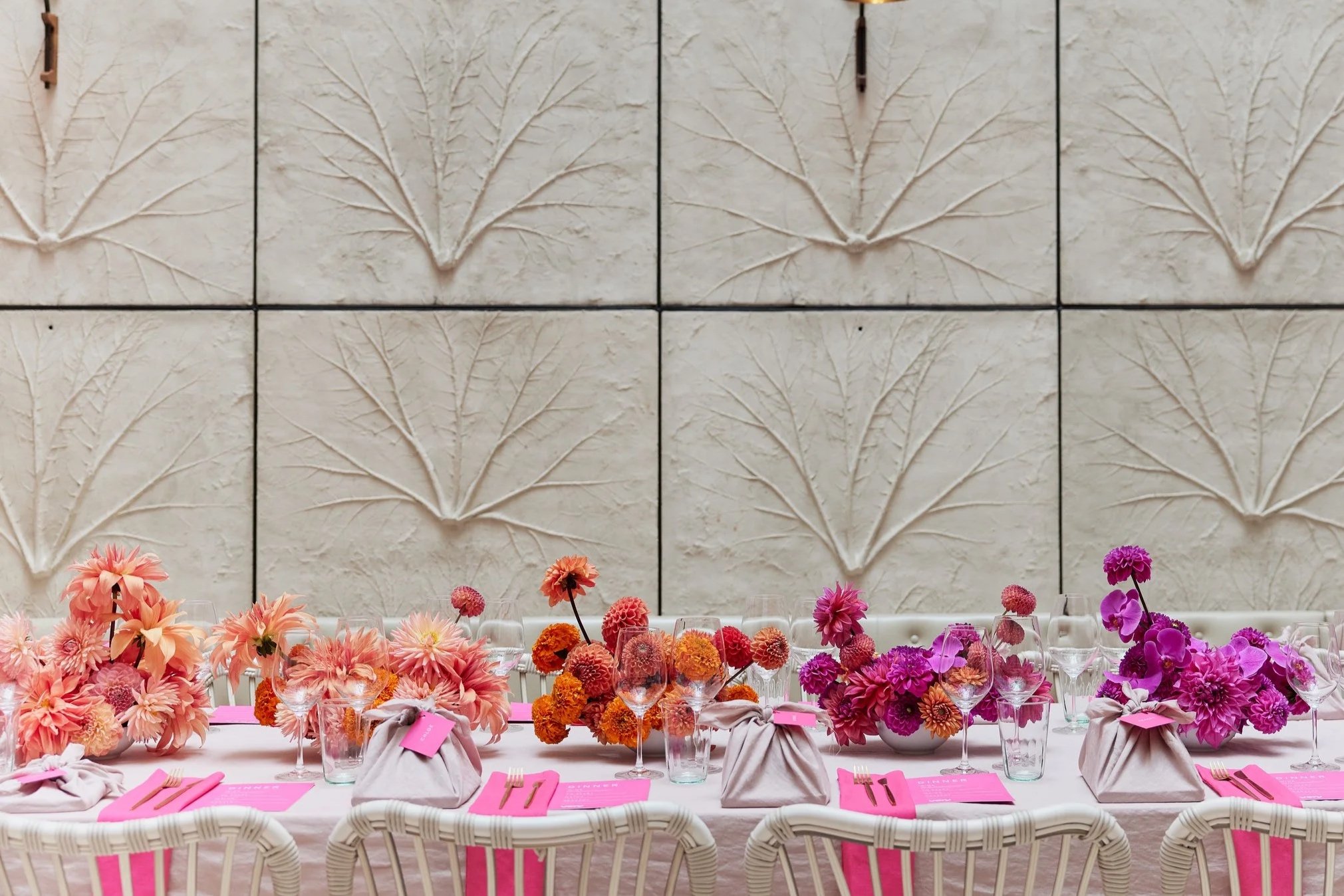 We have worked with a diverse range of incredible clients creating beautiful arrangements and show stopping installations for press shows, private parties, award dinners and corporate events. We love a party and know how to design florals to wow your guests.